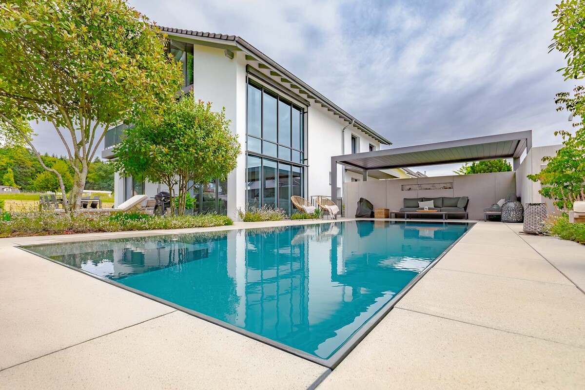 Die Inspiration dazu kam von NIVEKO-Partner Renggli und Freunden, die den NIVEKO-Pool schon seit Jahren als Teil ihrer Gartenatmosphäre betrachten. Die Konsultationen mit dem Techniker halfen, die Ideen zu konkretisieren, sie in ein reales Projekt umzusetzen und sicherzustellen, dass der gesamte Prozess reibungslos verlief - vom Traum bis zu den Momenten am Wasser.