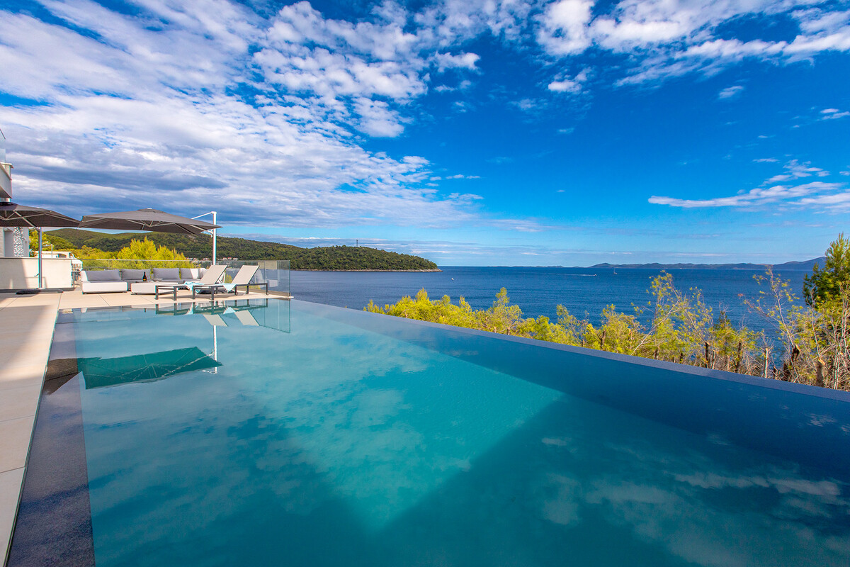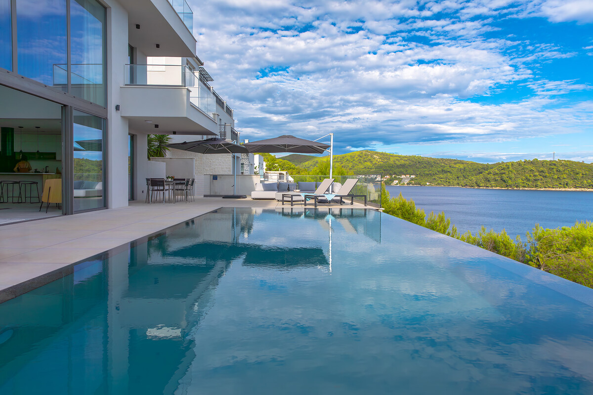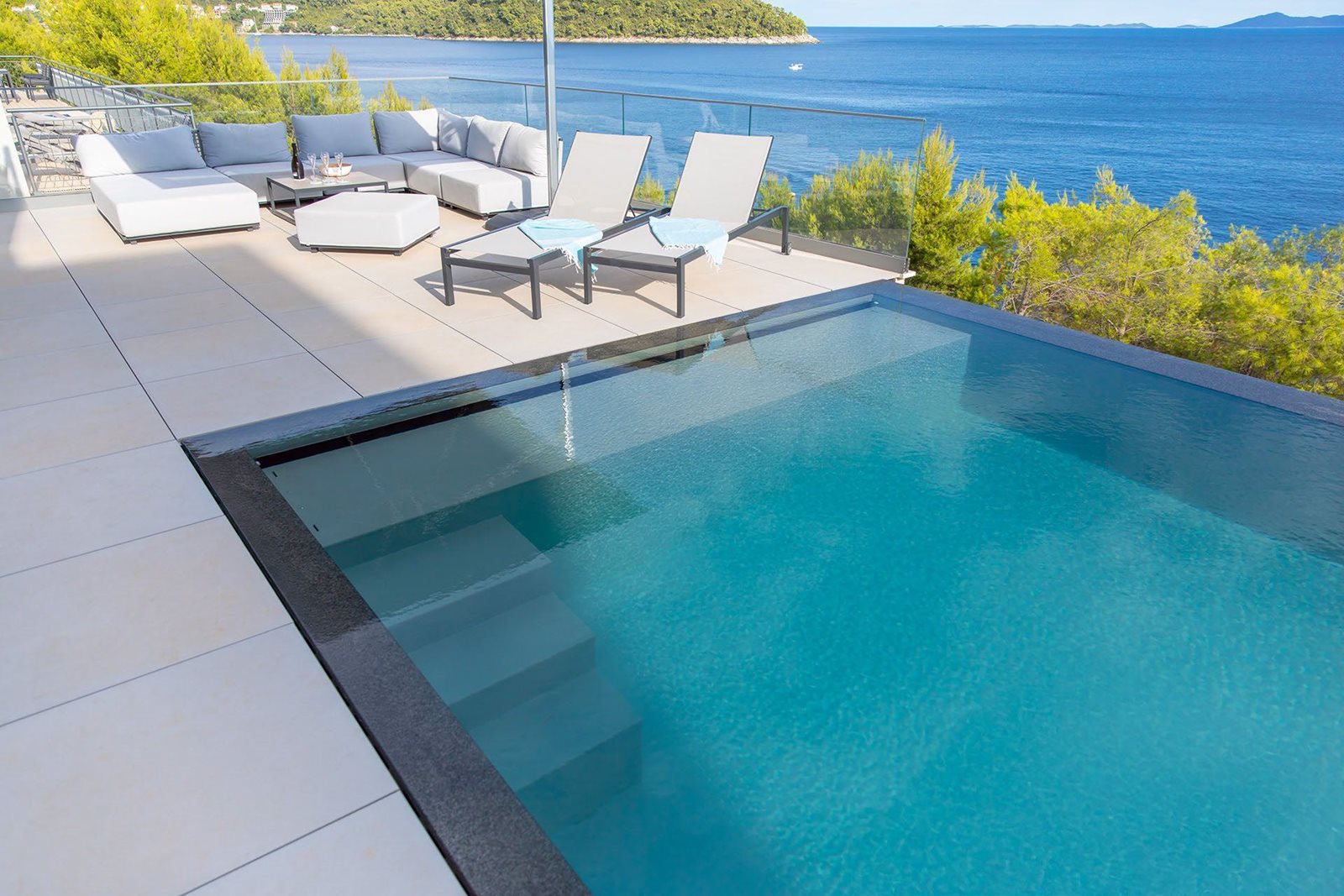 Die Villa am Hang mit großen Glasfenstern und endlosem Blick auf das Meer ist ein architektonisches Schmuckstück, das für die Familie der Eigentümer zu einem zweiten Zuhause geworden ist. Sie wollten einen Ort, an dem sie ihre Freizeit mit Familie und Freunden verbringen, Urlaub machen und sich wie zu Hause fühlen können. Der NIVEKO-Pool, der zum natürlichen Mittelpunkt der gesamten Villa wurde, rundet die Atmosphäre von Exklusivität und Luxus ab.